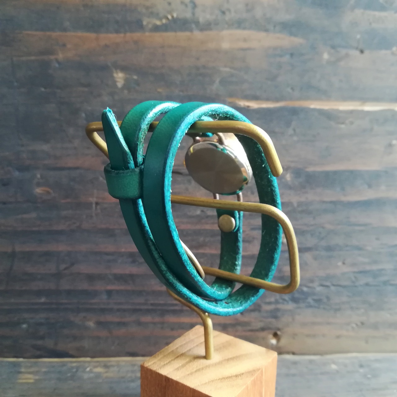 主張し過ぎない小さめのケースに、細身のベルトを二重巻きにする事でブレスレットの様に仕上げました。