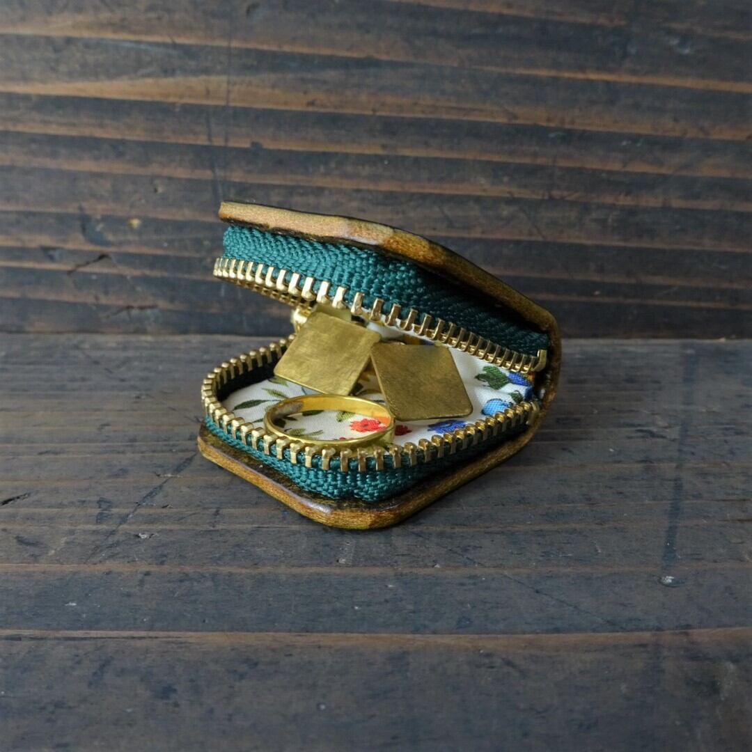 指輪やピアス、イヤリングなどのアクセサリーを入れるレザーケースです。